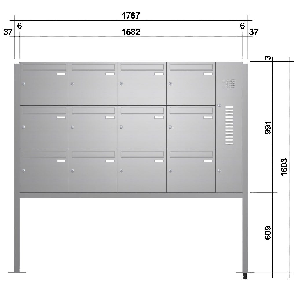 1-12 Kästen mit Klingel + Sprechanlage