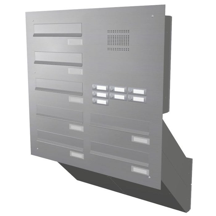 Hochwertige Edelstahl Mauerdurchwurf Briefkastenanlage mit Klingel + Sprechsieb