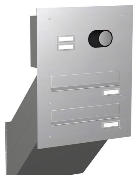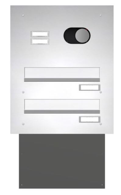 Der 2fache Mauerdurchwurf Briefkasten ist mit Klingel + Sprechsieb für eine Gegensprechanlage ausgestattet.