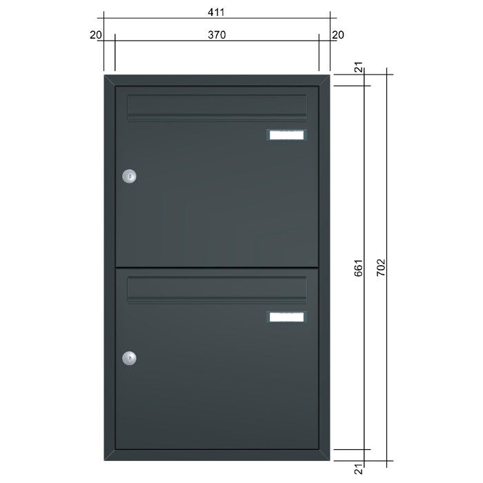 2er Unterputz Briefkastenanlage in vielen Farben z.B. Anthrazit, DB703, Weiß, Grau