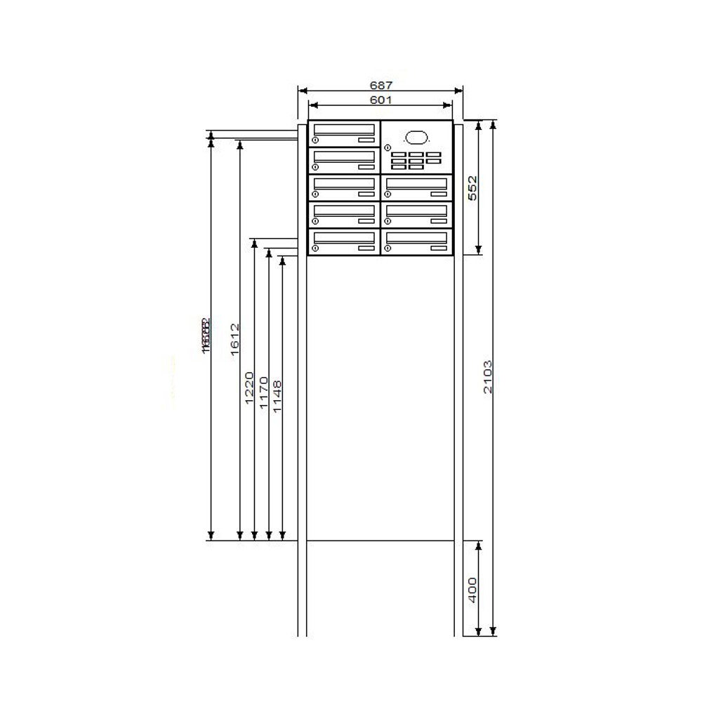 Einwurfklappe, Rückwand, Ständer, Verkleidung: Aluminium pulverlackiert