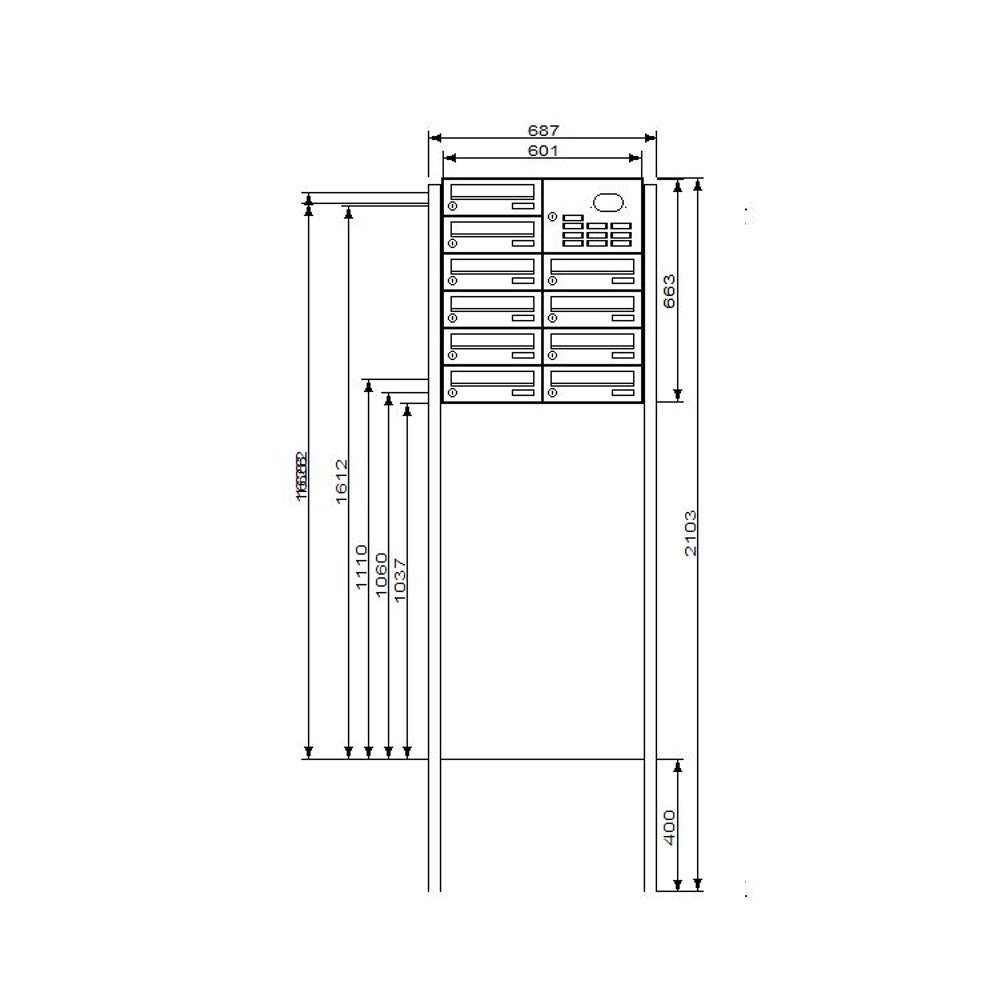 Einwurfklappe, Rückwand, Ständer, Verkleidung: Aluminium pulverlackiert