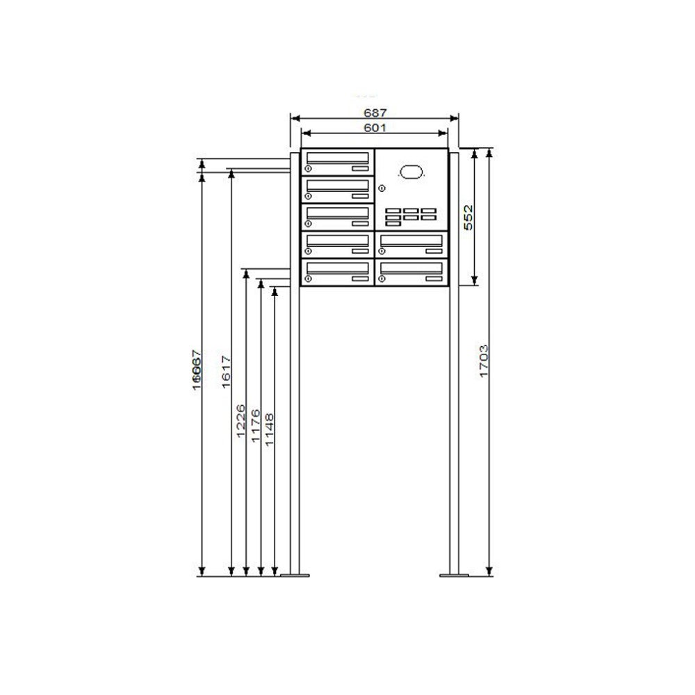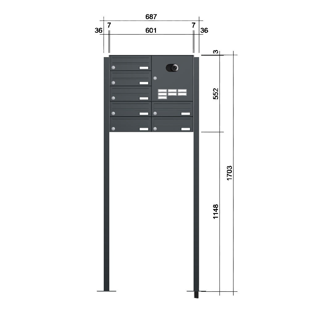 Einwurfklappe, Rückwand, Ständer, Verkleidung: Aluminium pulverlackiert