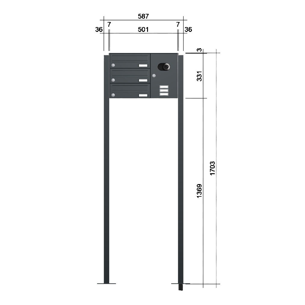 | Anzahl Briefkästen: | 3 Briefkästen |
