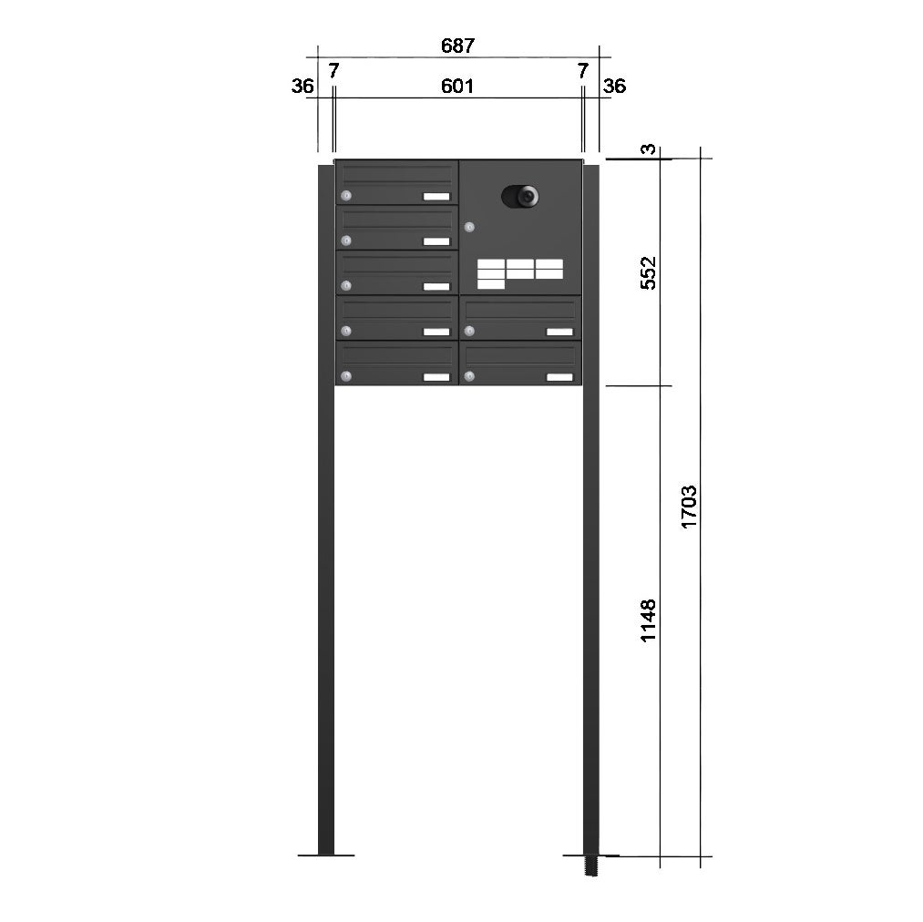 Einwurfklappe, Rückwand, Ständer, Verkleidung: Aluminium pulverlackiert