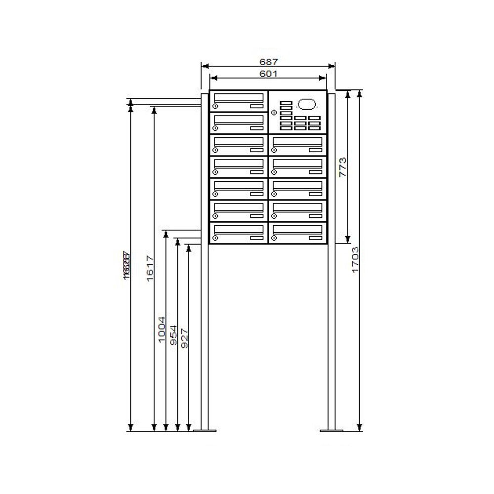 Einwurfklappe, Rückwand, Ständer, Verkleidung: Aluminium pulverlackiert