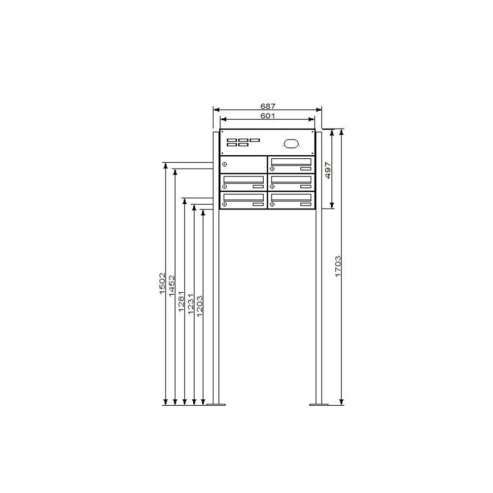 Einwurfklappe, Rückwand, Ständer, Verkleidung: Aluminium pulverlackiert