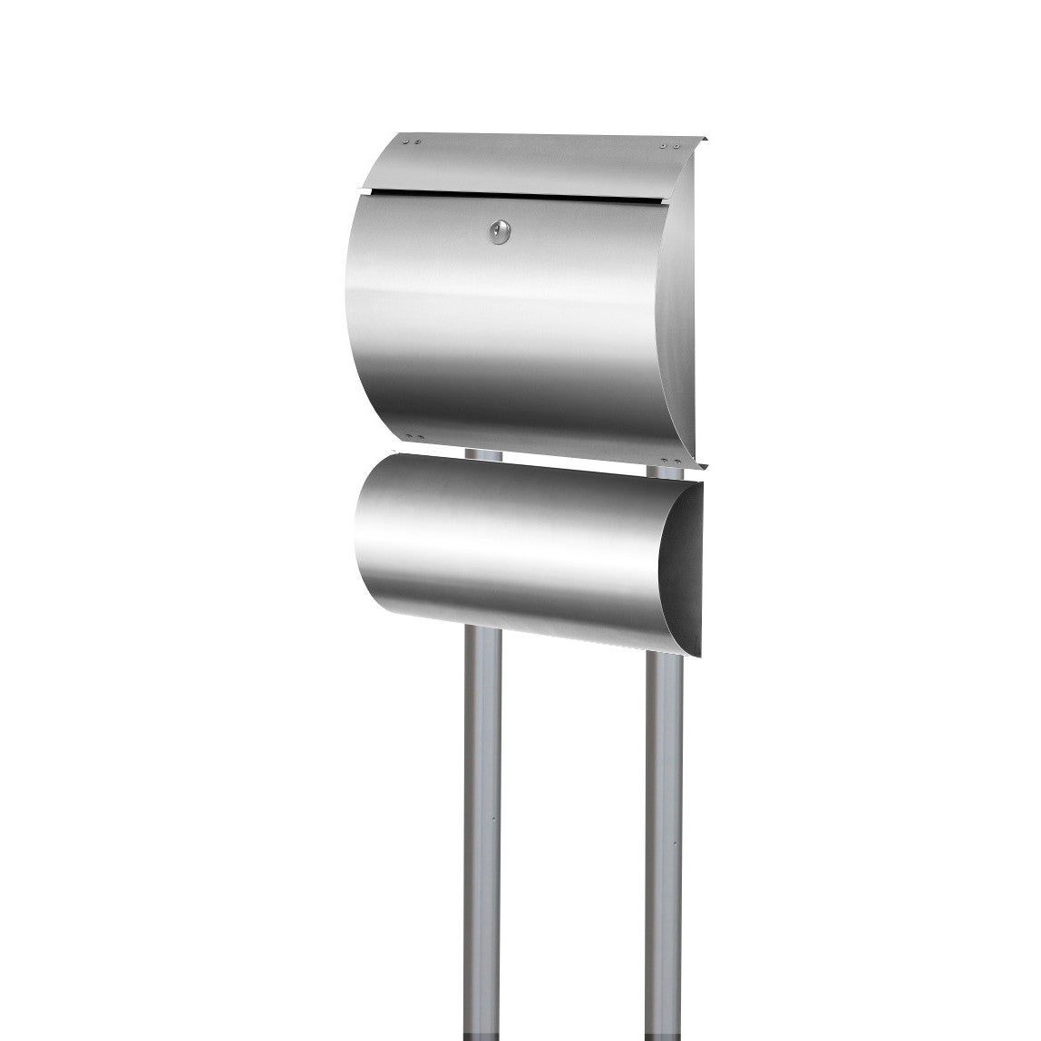 Hochwertiger Design Standbriefkasten aus Edelstahl V2A gebürstet mit gebogener Front.