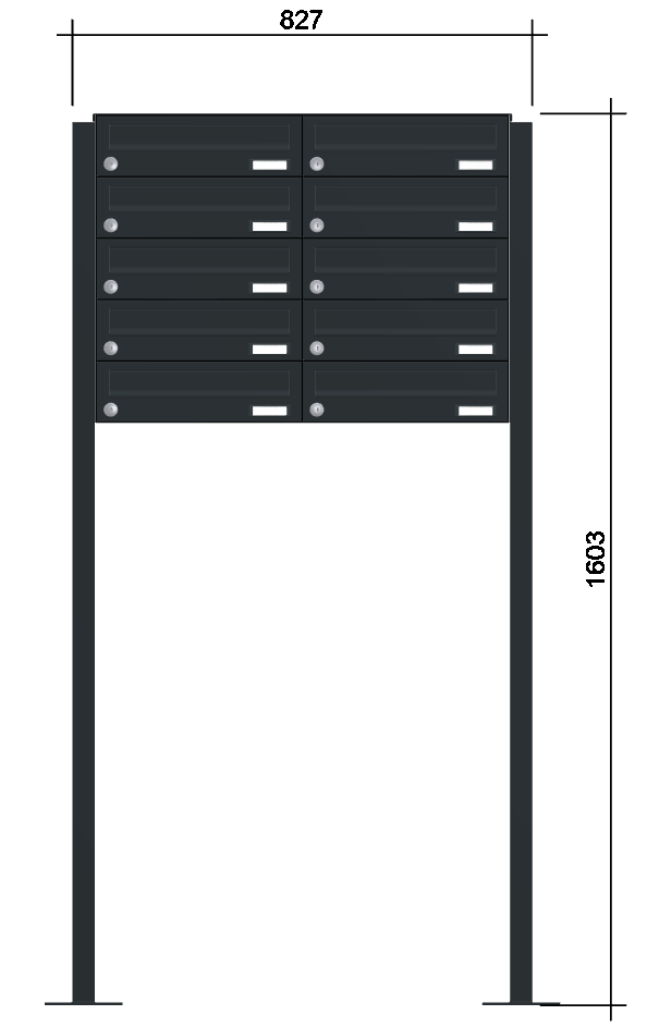 Einwurfklappe, Rückwand, Ständer, Verkleidung: Aluminium pulverlackiert