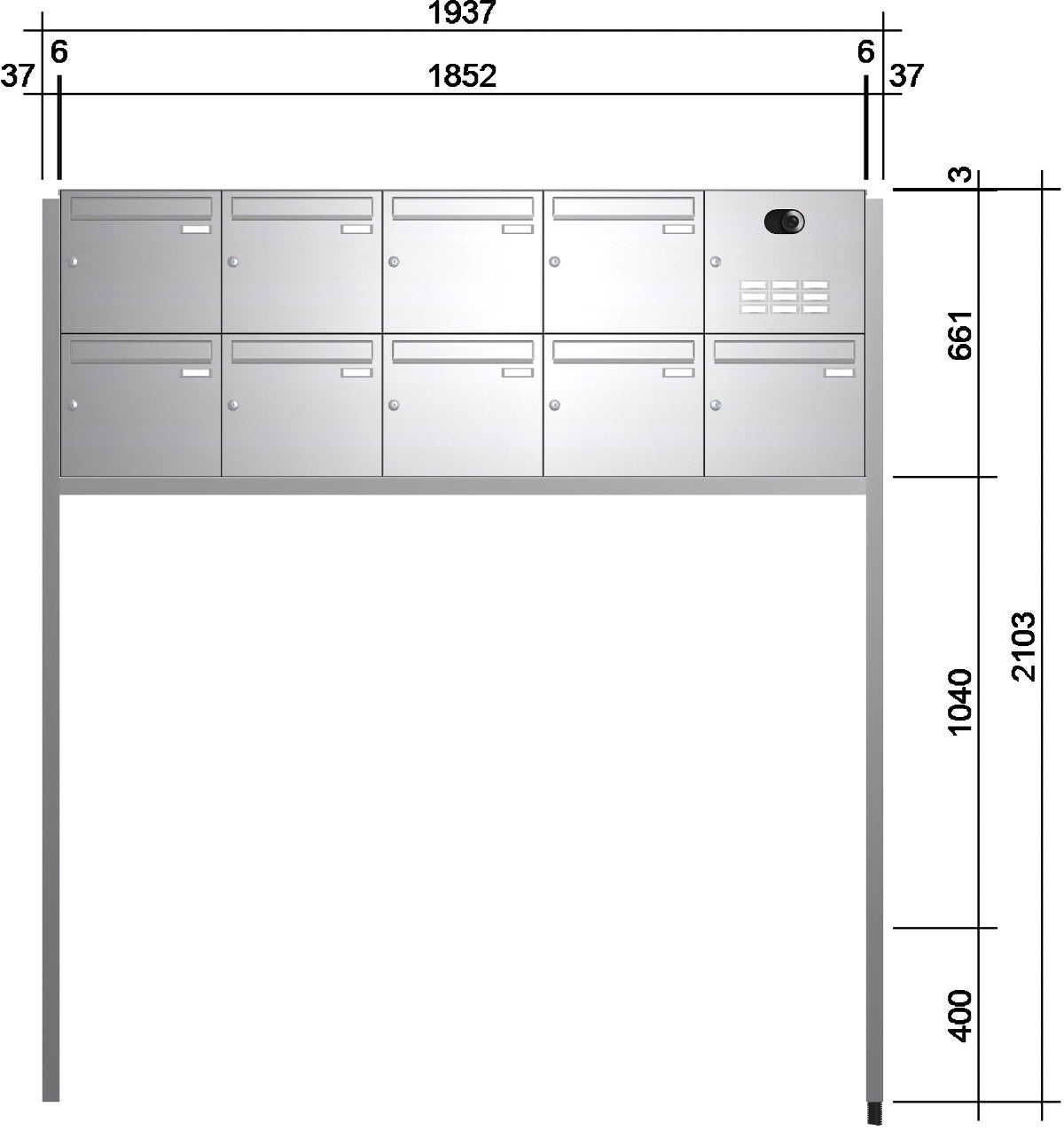 Freistehende Briefkastenanlage mit Kamera Edelstahl AVE