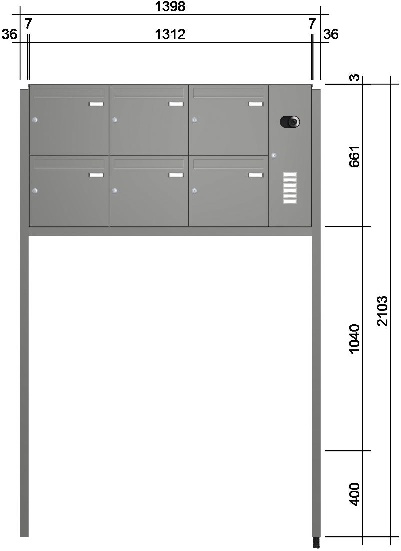 Einwurfklappe, Rückwand, Ständer, Verkleidung: Aluminium pulverlackiert