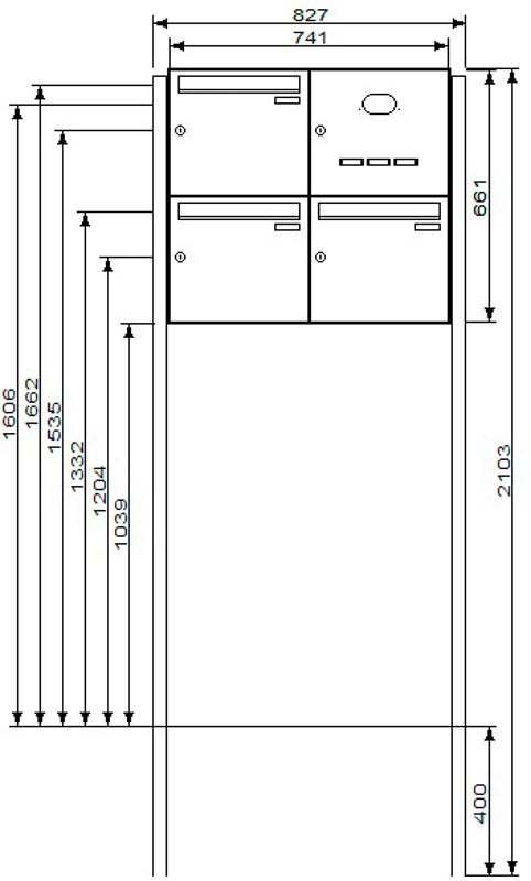 Einwurfklappe, Rückwand, Ständer, Verkleidung: Aluminium pulverlackiert