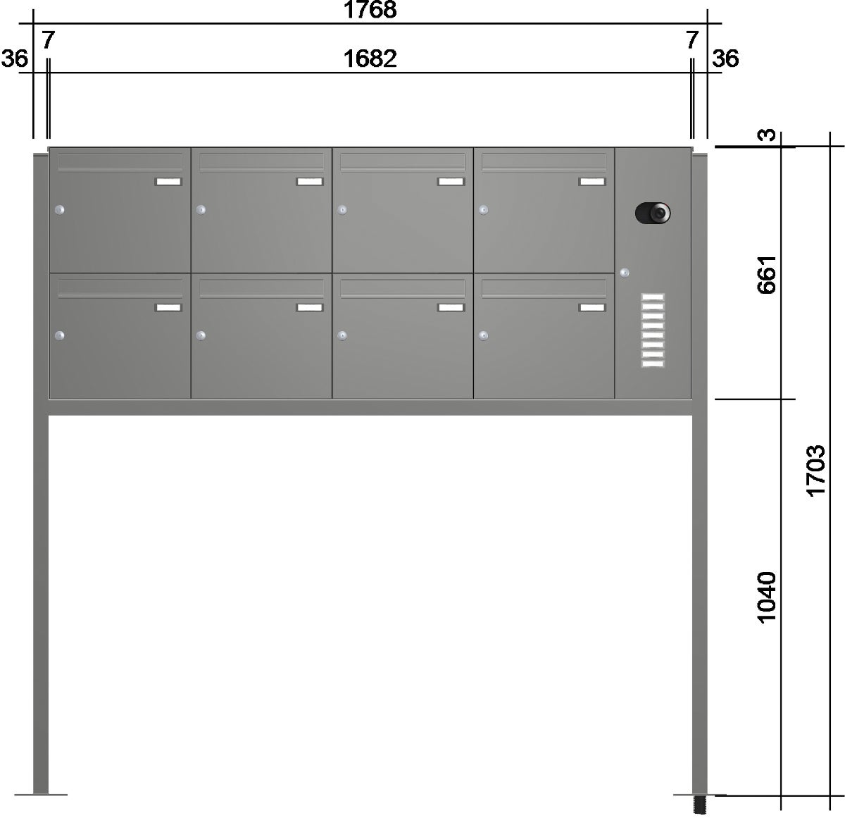 Einwurfklappe, Rückwand, Ständer, Verkleidung: Aluminium pulverlackiert