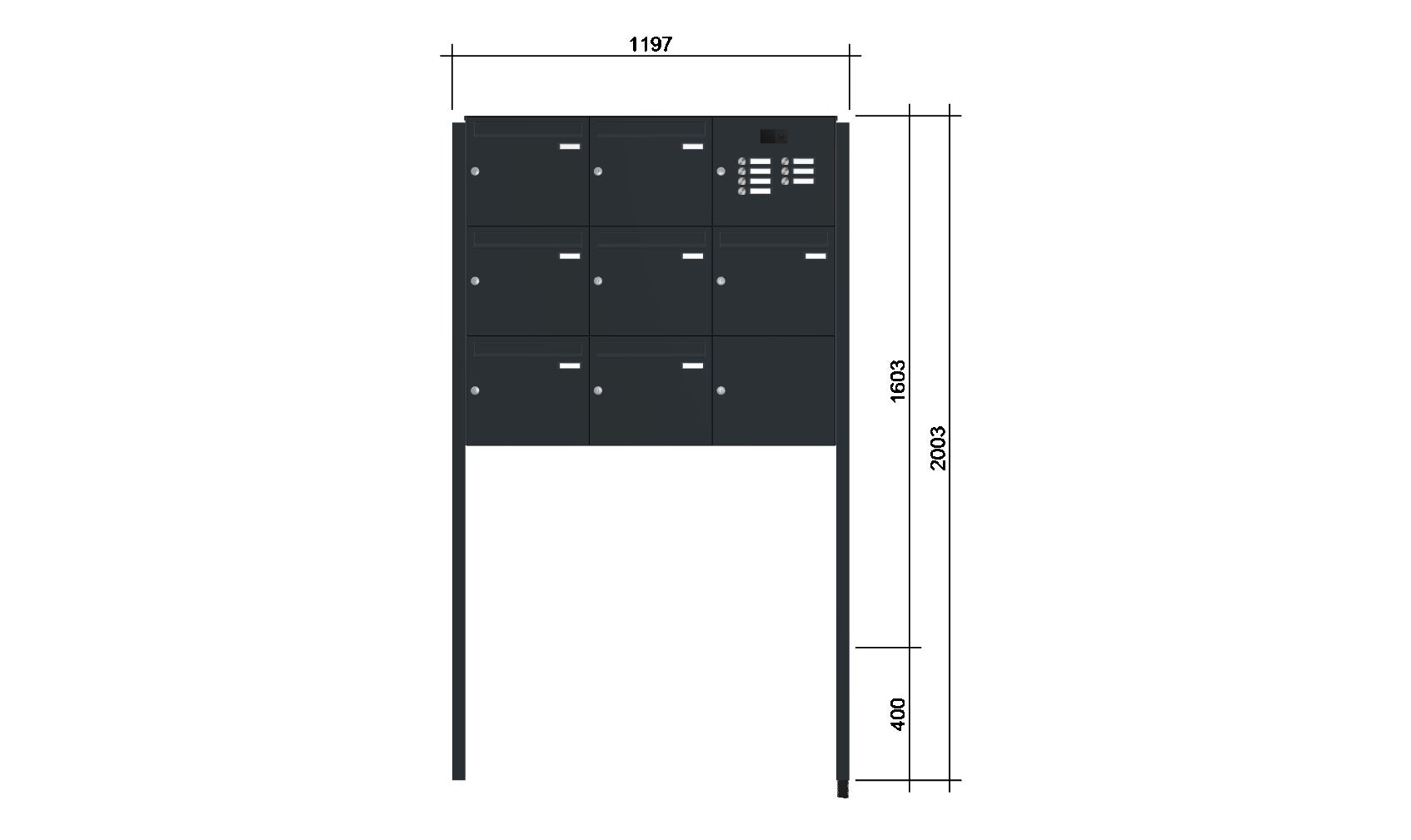 Einwurfklappe, Rückwand, Ständer, Verkleidung: Aluminium pulverlackiert