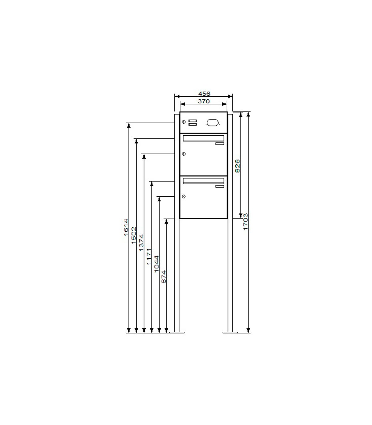 Einwurfklappe, Rückwand, Ständer, Verkleidung: Aluminium pulverlackiert