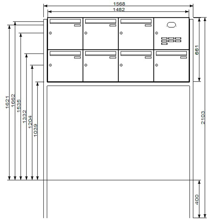 Einwurfklappe, Rückwand, Ständer, Verkleidung: Aluminium pulverlackiert
