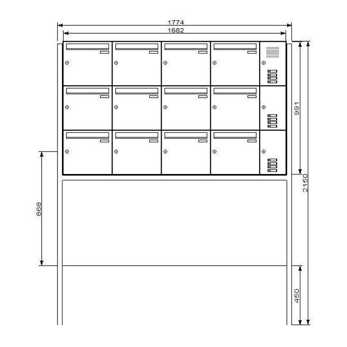 Einwurfklappe, Rückwand, Ständer, Verkleidung: Aluminium pulverlackiert