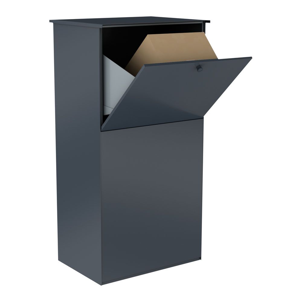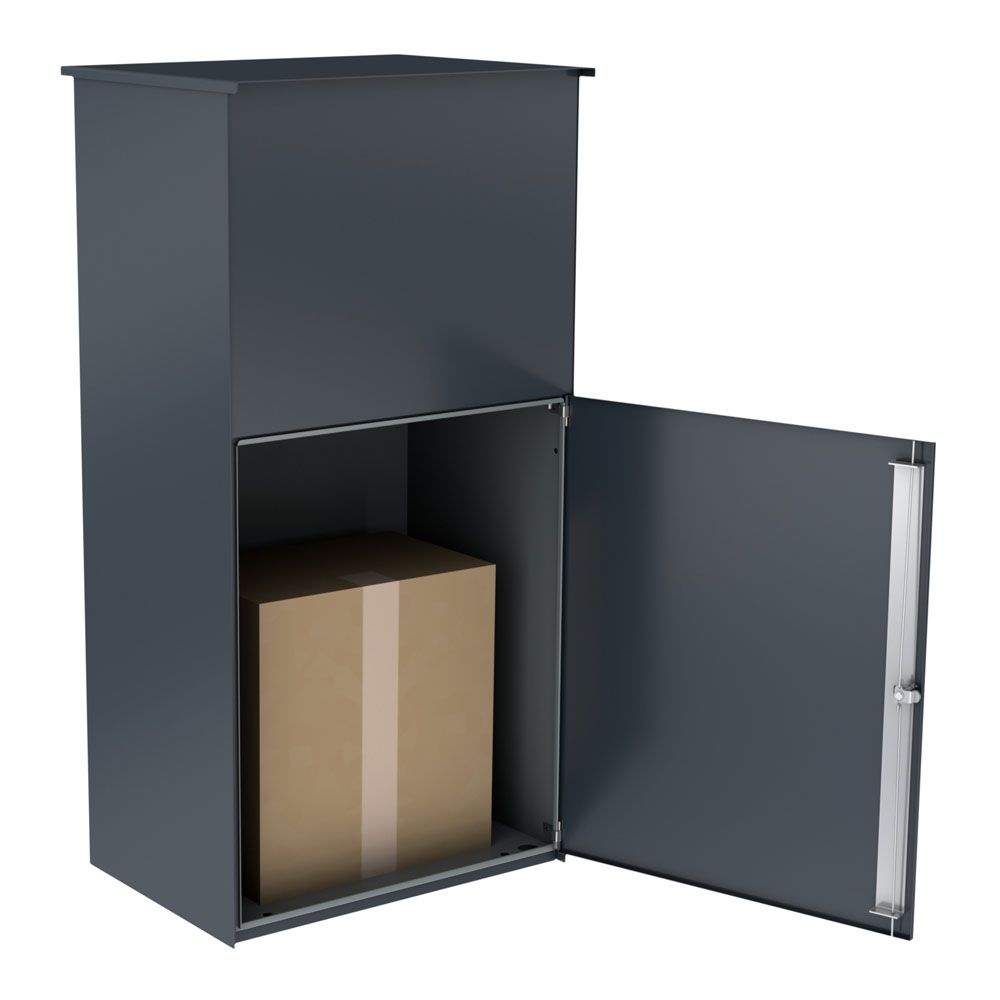 Dank der anbieterunabhängigen und benutzerfreundlichen Bedienung ist dieser Paketbriefkasten mit allen gängigen Paketdiensten kompatibel – unkompliziert, funktional und zuverlässig. Mit einem Fassungsvermögen von etwa 113 Litern sowie einer großzügigen Einwurfklappe für Pakete bis zur DHL-Packset-Größe L bietet er ausreichend Platz für große wie kleine Lieferungen. Eine intelligente Innenkonstruktion verhindert zudem unbefugtes Entnehmen der Sendungen.