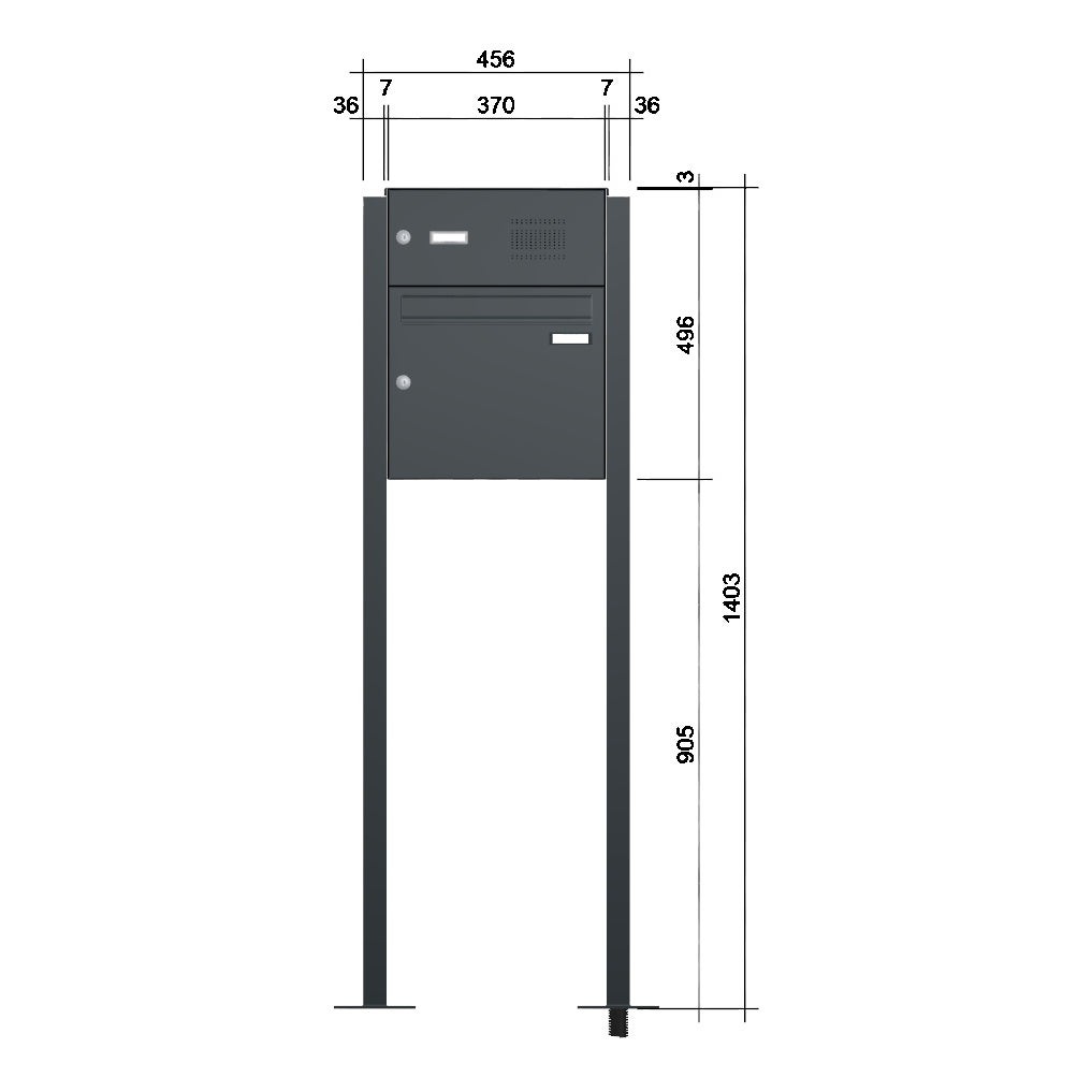 Einwurfklappe, Rückwand, Ständer, Verkleidung: Aluminium pulverlackiert