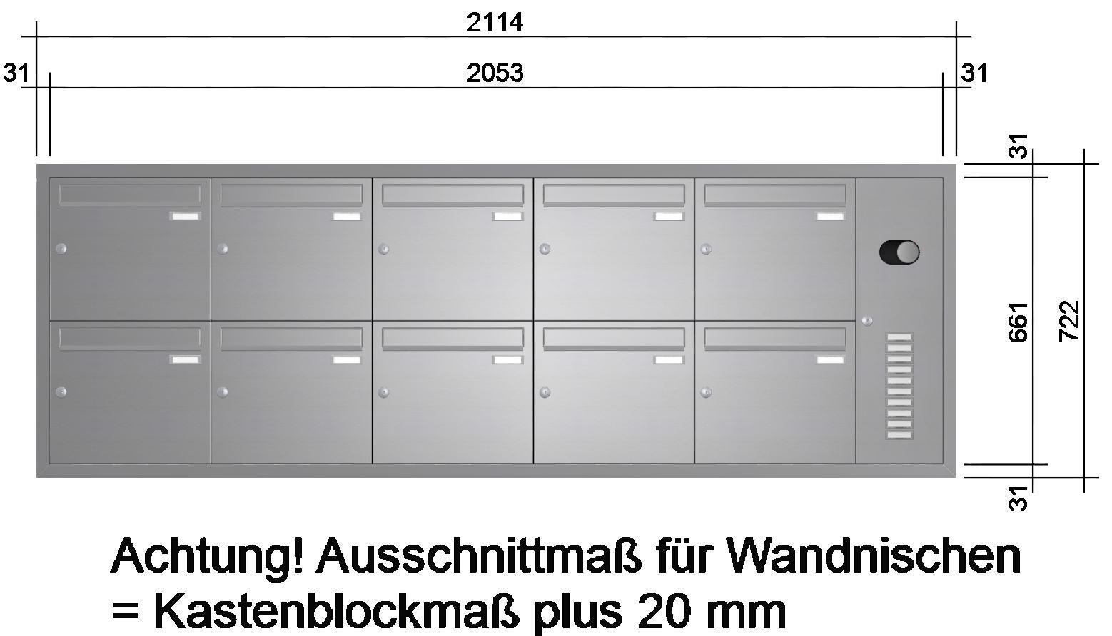 Unterputz Briefkastenanlage Edelstahl mit Klingel UP21E