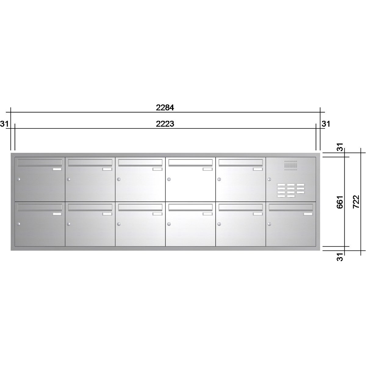 - ein Kunststoff Klingeltaster je Briefkasten inkl. LED-Beleuchtung