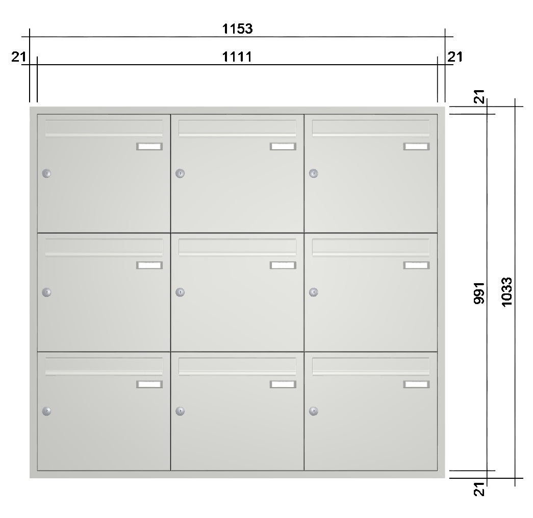 Moderne Unterputz Briefkastenanlage für Mehrfamilienhaus in vielen Farben z.B. Anthrazit, DB703, Weiß, Grau
