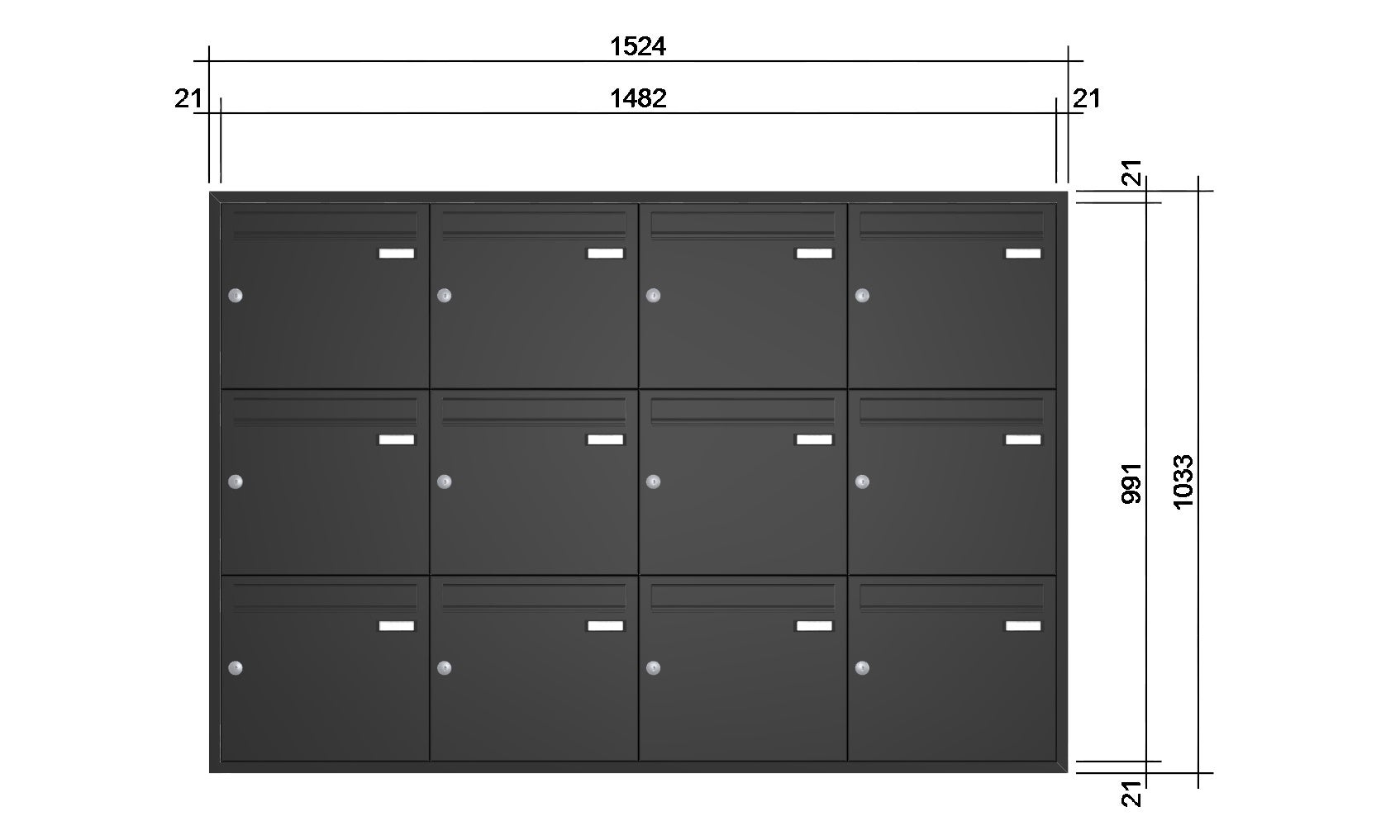 Moderne Unterputz Briefkastenanlage für Mehrfamilienhaus in vielen Farben z.B. Anthrazit, DB703, Weiß, Grau