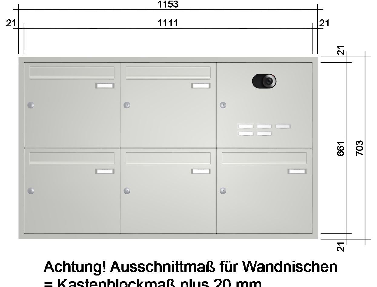 | Anzahl Briefkästen: | 3 Briefkästen, 4 Briefkästen, 5 Briefkästen, 6 Briefkästen, 7 Briefkästen und mehr |