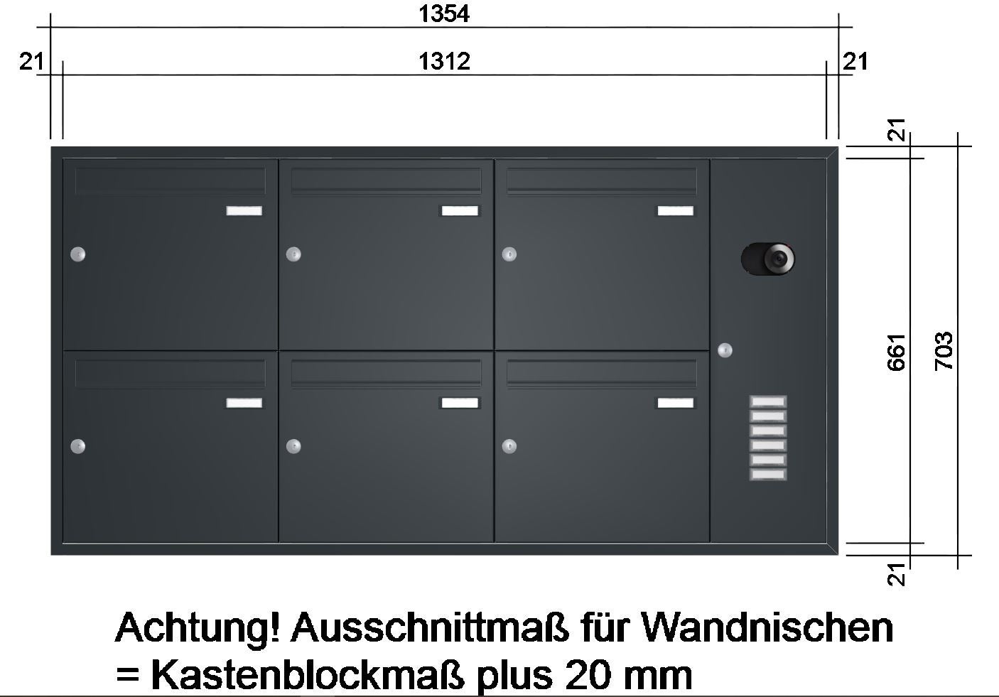 | Anzahl Briefkästen: | 3 Briefkästen, 4 Briefkästen, 5 Briefkästen, 6 Briefkästen, 7 Briefkästen und mehr |